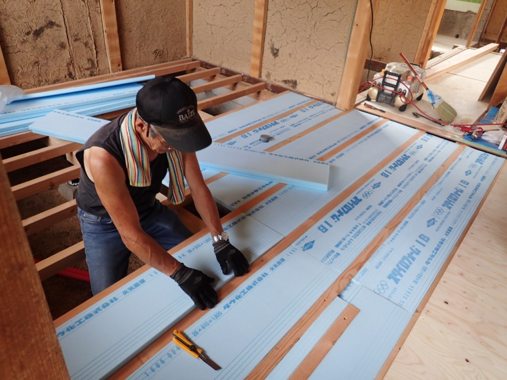 床の気を敷いた後は、断熱効果のある素材を敷き詰めていきます。