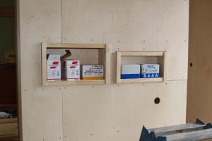 大きいほうのニッチはキーフックを取り付け、車のカギをかける場所用に作ってもらいました。