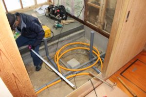 前回の続き、今度は浴室とは反対の脱衣場部分の改修工事を行っています。