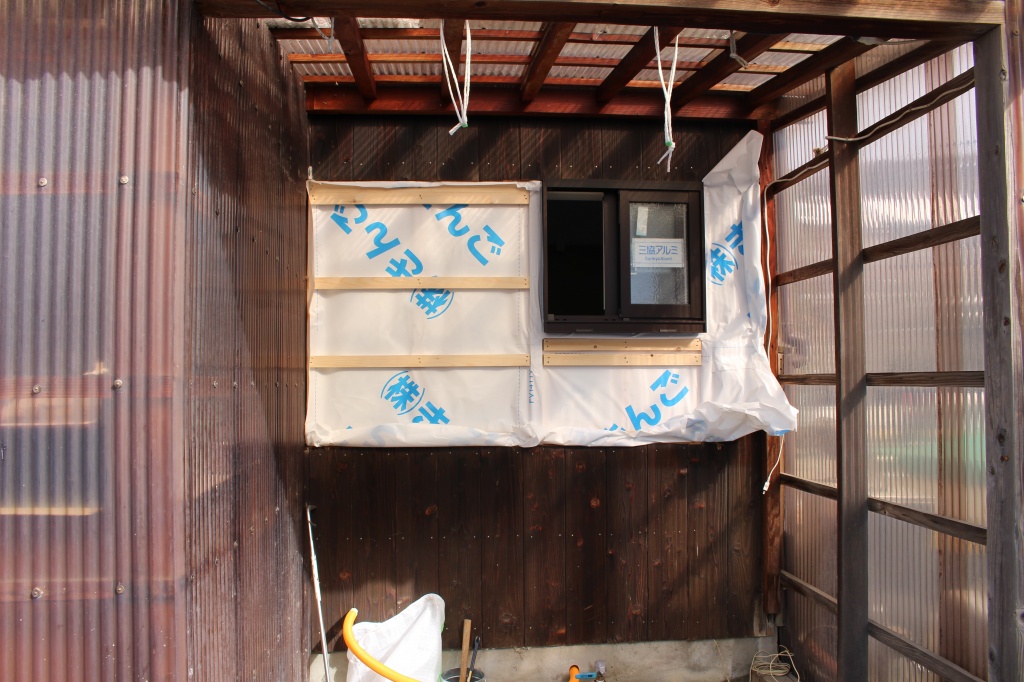 寒いと仰っていた大きな窓を取り、複層ガラスの小さな窓に変更しました。