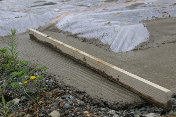 くぼんだ部分をぐるっと一周コンクリートを入れてならします。