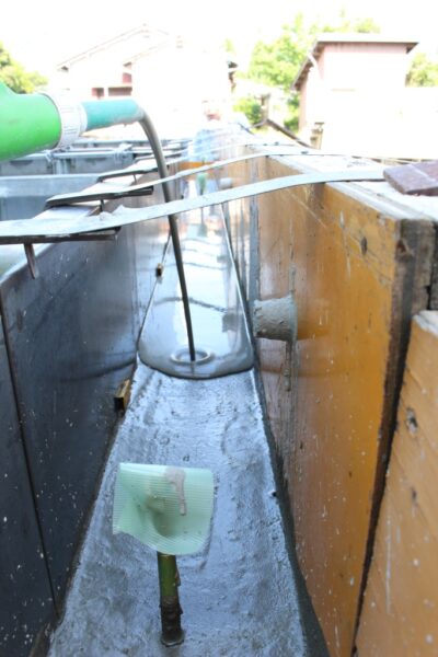 コンクリートバイブレーターでブルブルと気泡を抜き、