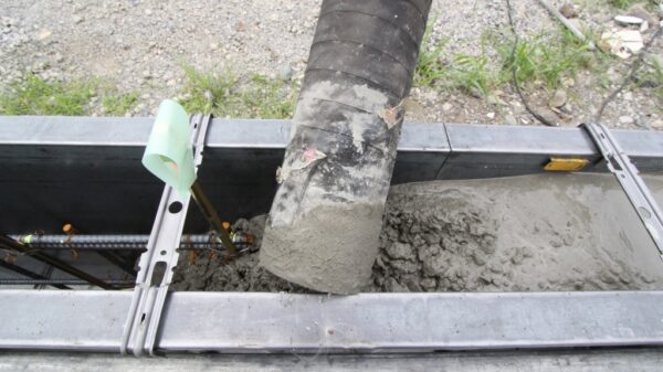 ゾウさんのお鼻から型枠の中へ生コンを流し入れていきます。