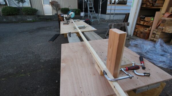 手前の木からスライド丸鋸までの長さにカットしていきます。
