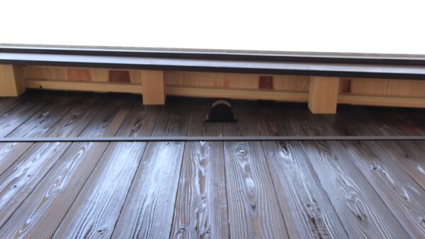 外壁は焼杉、ちらりと見える軒天と合わせてカッコイイ。
