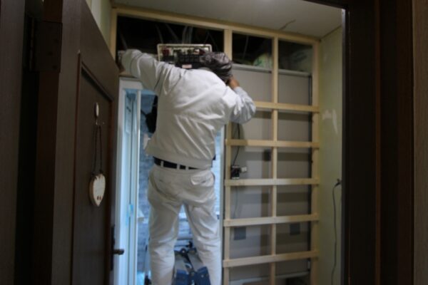 脱衣所の壁紙にカビが生え、お施主様ご自身で張り直しをされたそうですがまたカビが発生。